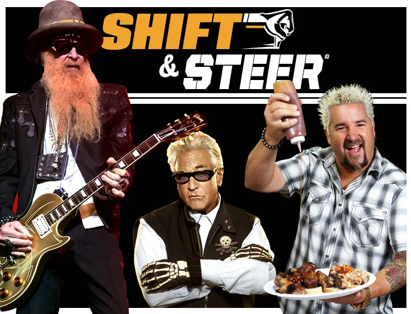 Billy F. Gibbons from ZZ Top & Celebrity Chef Guy Fieri join the boys from Shift and Steer at the 2014 SEMA show.