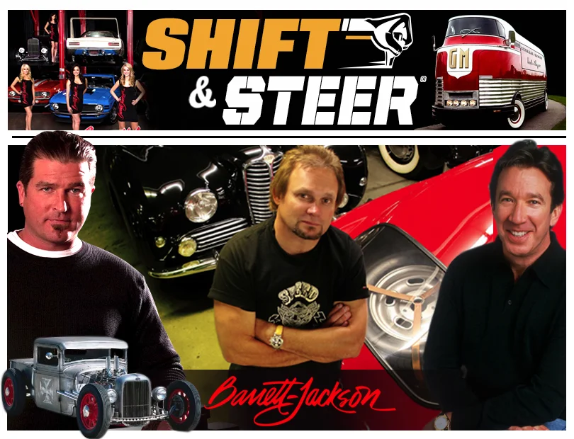 The cast of Shift and Steer attends the big Barrett-Jackson auction in Scottsdale, Arizona. Despite huge noisy crowds, noisy cars being driving through the staging area and a giant audience they get you interviews. The guests include Jimmy Shine from SO-CAL Speed Shop, Actor Tyson Sullivan from Cinemax's Banshee, Tim Allen, Michael Anthony, Gene Winfiled and The Ring Brothers.