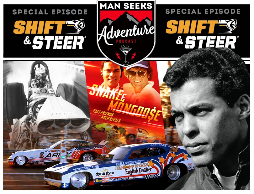 This weeks episode of Shift and Steer has been hijacked! No, we didn't make a mistake, Shift and Steer is just giving you a preview of another podcast you might like. Man Seeks Adventure is a new podcast hosted by our own bonspeed Brad Fanshaw and his friend Dave Marek. It's a manly show about Cars, Bars, Eats and Adventure. In this episode the guys have a lively conversation with one of the true legends of motorsports - Don "The Snake" Prudhomme! The Shift & Steer crew will be back next week with all new mischief and mayhem!