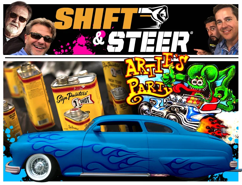 This is our live show from the floor of Artie's Party at the Syracuse Nationals. Shift and Steer invites Rob Ida on the show to talk about the 1940 Mercury he built and is up for the Gene Winfield Award. We also talk travel, fast cars and then Art Schilling "Artie" gives us an update on the Charity pinstriping event. Finally Gene Winfiled crashes the podcast.