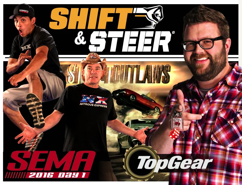The guys from Shift and Steer invade the SEMA Garage during their open house and talk car trips, car tips, and chat with guests Courtney Hansen, Dennis Pittsenbarger and actor Sung Kang from the Fast and The Furious movies.